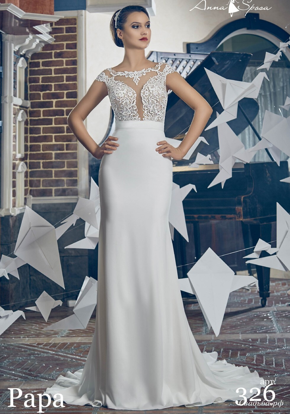 Эффектное свадебное платье с облегченным корсетом и небольшим шлейфом. Идеально подчеркивает фигуру.
