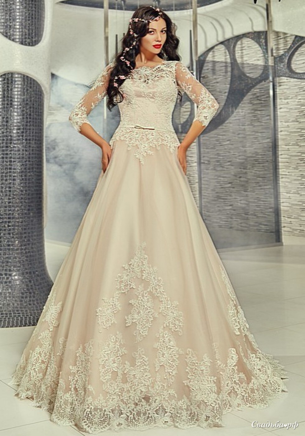 Эффектное свадебное платье с небольшим шлейфом. Выгодно подчеркивает фигуру. Легкое и комфортное.