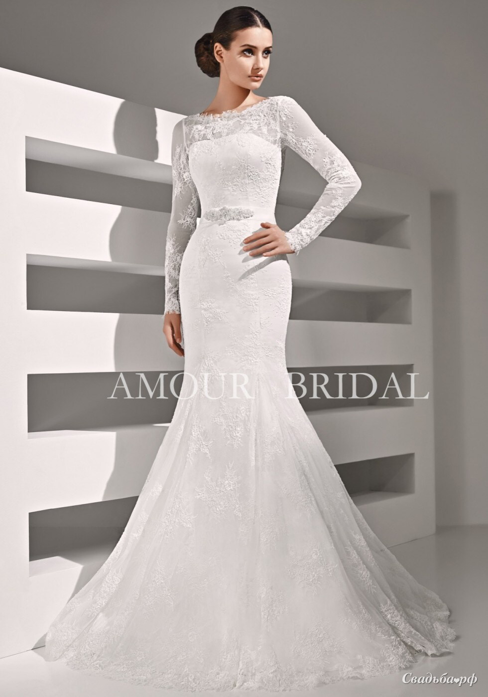 Изысканное свадебное платье из нежнейшего кружева Шантильи. Очень легкое и комфортное. Идеально подчеркивает фигуру. Спина эффектно открыта. Небольшой и удобный шлейф.