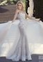 Кружевное свадебное платье с эффектным шлейфом. Выгодно подчеркивает фигуру. Создает изысканный и запоминающийся образ.