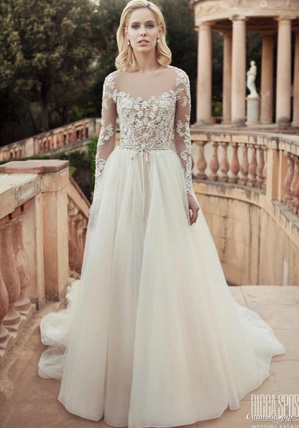 Романтичное свадебное платье А-силуэта со шлейфом. Корсет украшен нерасшитым кордовым кружевом. Выгодно подчеркивает фигуру.