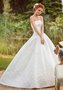 Необыкновенный и сложный крой платья с четким и прямым членением лифа смягчается сложной фактурой ткани. Эффектный жаккард с цветочным рисунком придает нежности и очаровывает. Модель смотрится очень сдержанно и целостно за счет использования шелкового канта, который подчеркивает четкость линий, и придает модели скульптурности и сдержанности.