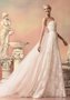 Кружевное платье с отстегивающимся шлейфом из нежного фатина. Оригинальность модели придает нежно-розовый подклад, придавая платью необыкновенно красивый розоватый оттенок. Модель может быть также выполнена в монохромном белом или кремовом цветах.