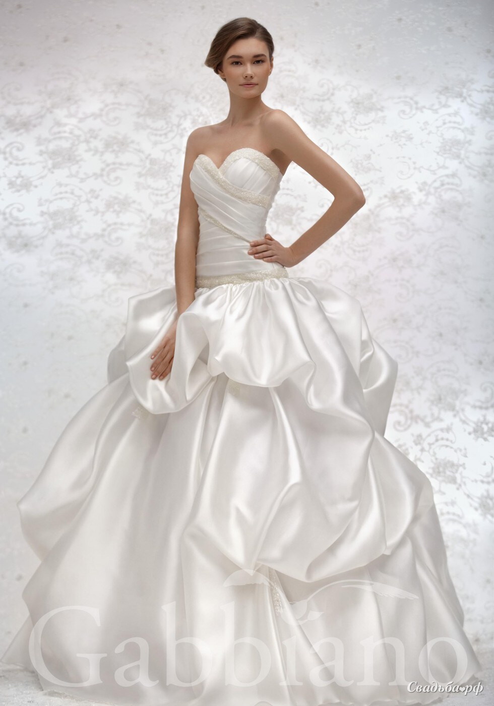 Пышное платье выполнено из облегченной тафты. Выдержанный строгий корсет украшен бисерной вставкой, идеально подчеркивает грудь!