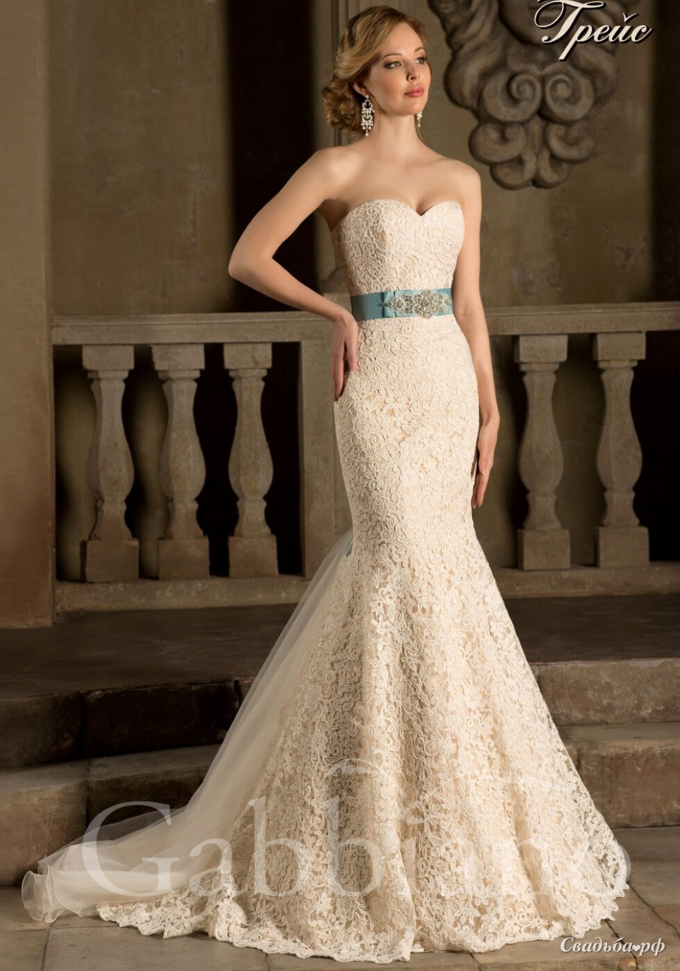 Царственная элегантность кружевных рельефных завитков, в сочетании с прекрасно сидящим по фигуре корсетом, сделают невесту невероятно особенной и подчеркнут роскошь торжественного события.