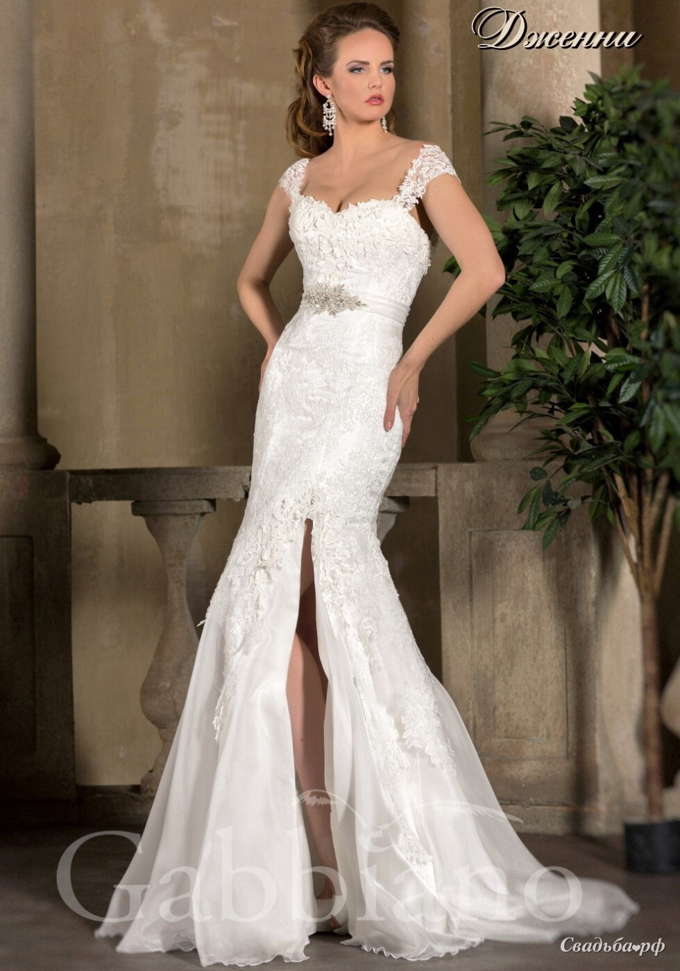 Эффектная и дерзкая модель, в которой невеста почувствует себя настоящей Королевой! Словно стремясь выделиться из целомудренно-длинных нарядов, возник этот роскошный образ с изюминкой в виде пикантного разреза на юбке. Выразительно оформленный верх платья позволяет акцентировать внимание на форме груди и подчеркнуть потрясающую линию декольте. Живописное кружево добавляет благородства, королевского шика и аристократической элегантности.