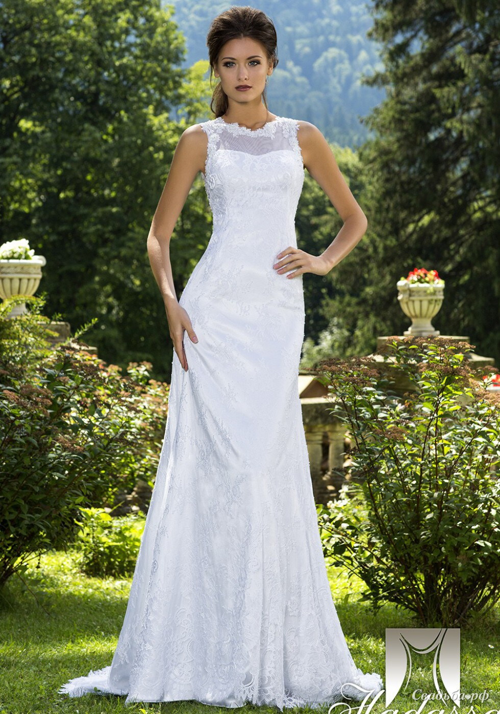 Платье прямого покроя из тончайшего мерцающего кружева не оставит равнодушными даже самых взыскательных ценителей женской красоты. Роскошный шлейф потрясающе подойдет для незабываемой фотосессии.