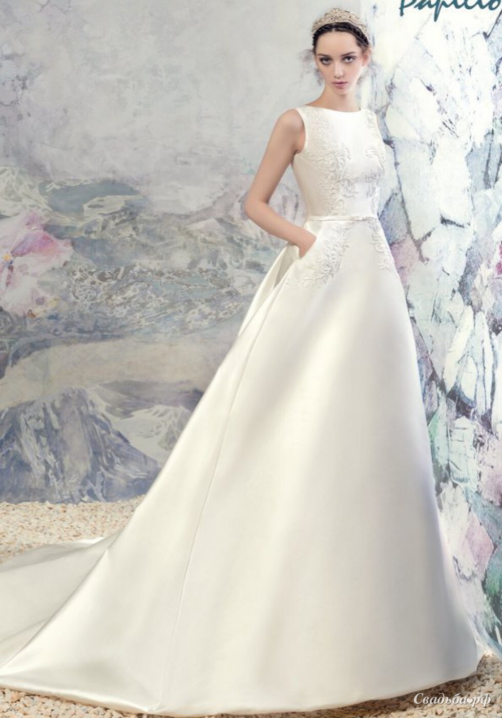 Платье из царственной шелковой тафты с приглушенным блеском достойно представит невесту. Легкими ненавязчивыми штрихами обозначился декор из бисера. Тихое шуршание ткани при ходьбе заставит обернуться и восхититься. Практичная деталь - карманы — неотъемлемый элемент данной модели. Модель выполнена из шелковой тафты со шлейфом. Предлагается в молочном цвете.