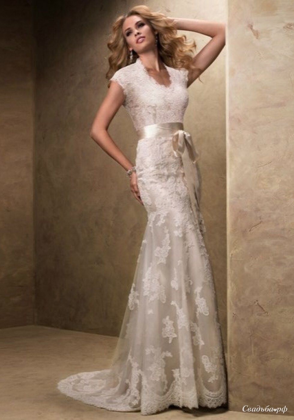 Очаровательное платье фасона "рыбки" подойдет стройным невестам, подчеркнет линию бедра.