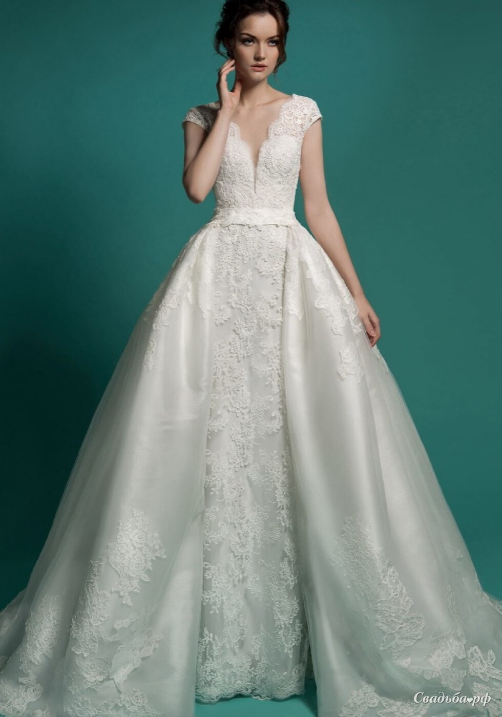 Очаровательное платье-трансформер силуэта рыбка. Пристегивающейся шлейф добавляет фееричности данному платью и меняет силуэт.