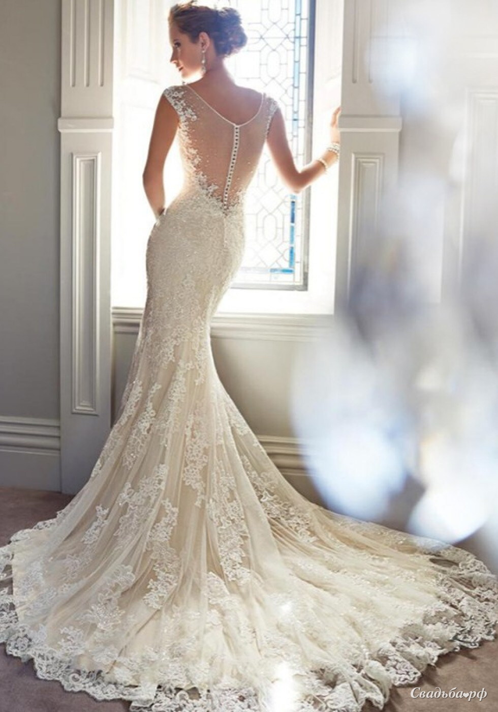 Красивое стильное кружевное платье силуэта "рыбка" подчеркнет Вашу фигуру.