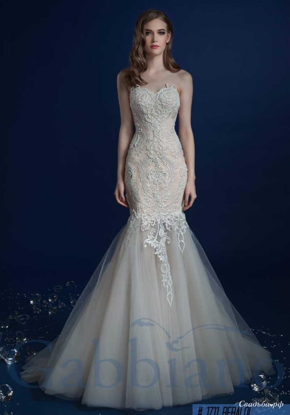 Невероятно красивое свадебное платье из новой коллекции Gabbiano Brilliant 2017 из фатина с расшитым кружевом.