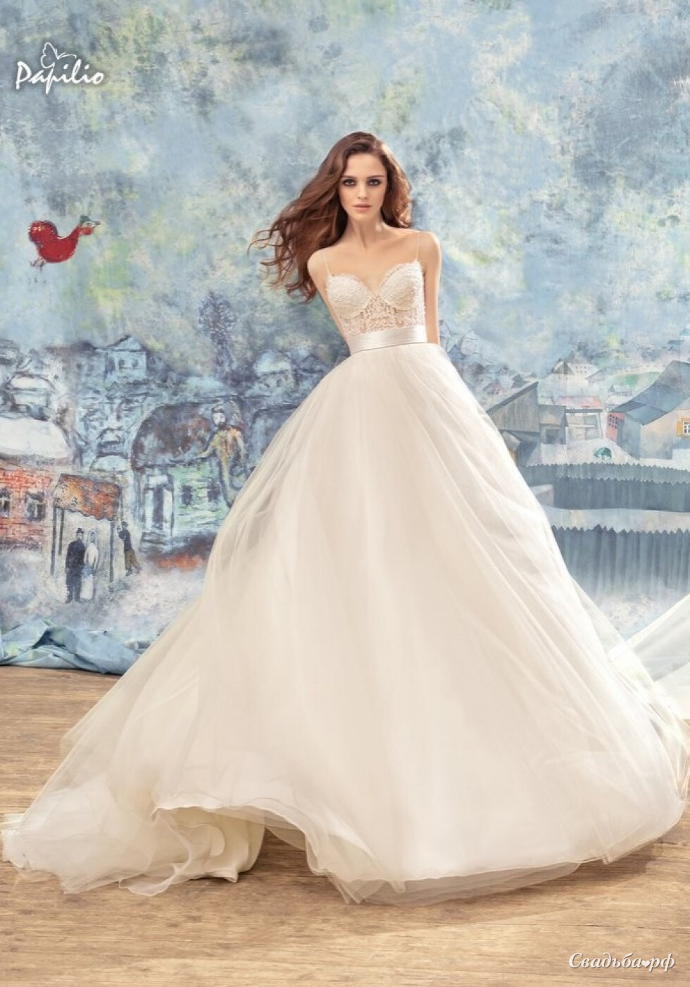 Стильное свадебное платье из фатина и кружева из новой коллекции Papilio.