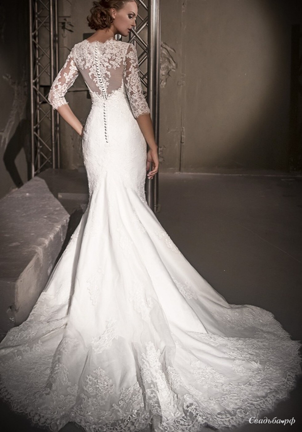 Стильное свадебное платье по фигуре (рыбка) идеально подойдет для тех невест, чьи формы идеальны! Невероятная кружевная спинка завораживает, притягивает взгляд.