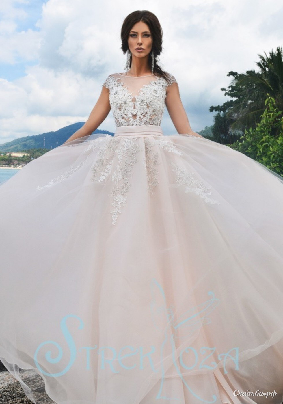 Стильное свадебное платье из новой коллекции известного мирового бренда Strekkoza by Gabbiano с легкой юбкой из фатина и красивой кружевной маечкой.