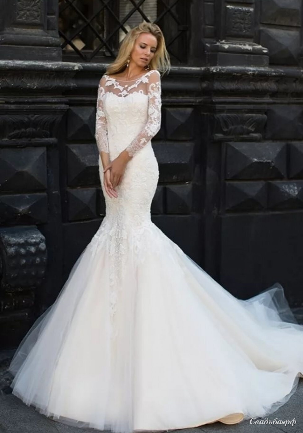Шикарное свадебное платье с кружевными рукавами, сулуэт "рыбка".