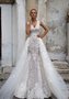 Стильное свадебное платье по фигуре со съемным шлейфом.
