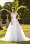 Ничего лишнего, только актуальные детали! Полупрозрачная «маечка» и кордовое кружево, пояс на атласной ленте декорирован камнями Сваровски - перед нами образец классического свадебного платья в современном исполнении.