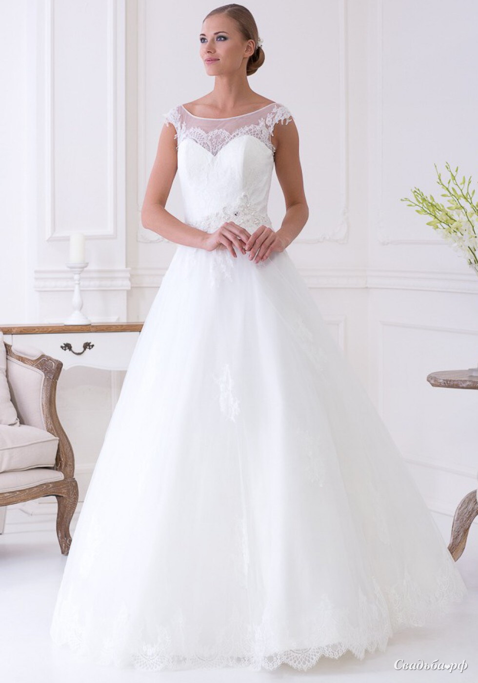 Классический силуэт этого романтичного платья освежает оригинальный акцент в виде необычного выреза на спине. Нежности образу придаёт бесподобное сочетание нежного кордового кружева и элегантной вышивки камнями Сваровски, которое не нуждается в дополнительном блестящем декоре.