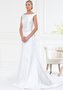 Cвадебное платье прямого силуэта создает изысканный образ с легким намеком на винтажный стиль. Такой эффект обеспечивает классический для середины двадцатого века вырез лодочкой и плотный глянцевый атлас, из которого создано платье. Широкие бретели слегка спускаются на плечи, подчеркивая их форму, а талию помогает выделить атласный пояс с мерцающей отделкой, плотным слоем покрывающей его по всей длине.