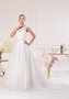 Роскошное, но романтичное свадебное платье А-силуэта со шлейфом. Полупрозрачный лиф-«маечка» из кружева с цветочными мотивами, открытая спина, великолепная вышивка на талии бисером и пайетками и пышная юбка из фатина – волшебный образ для романтичный натур!