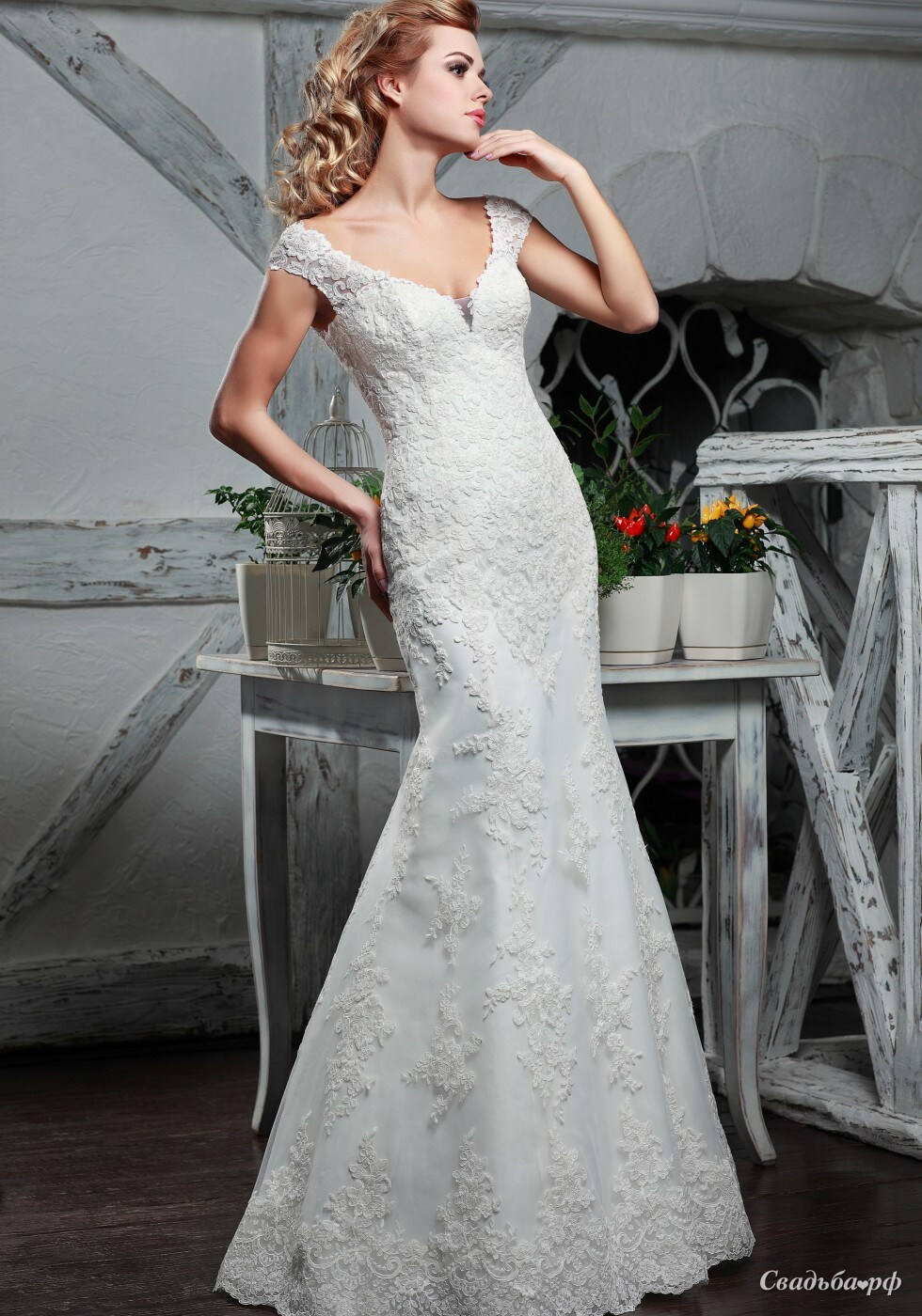 Кружевное свадебное платье силуэта "рыбка".
