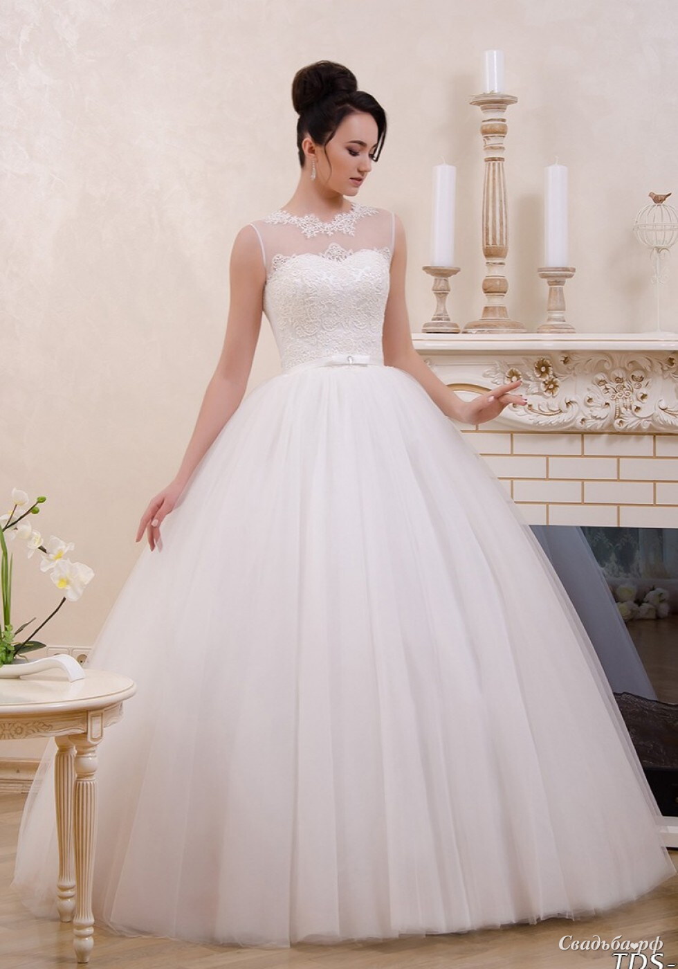 Свадебное кружевное платье силуэта "с пышной юбкой"