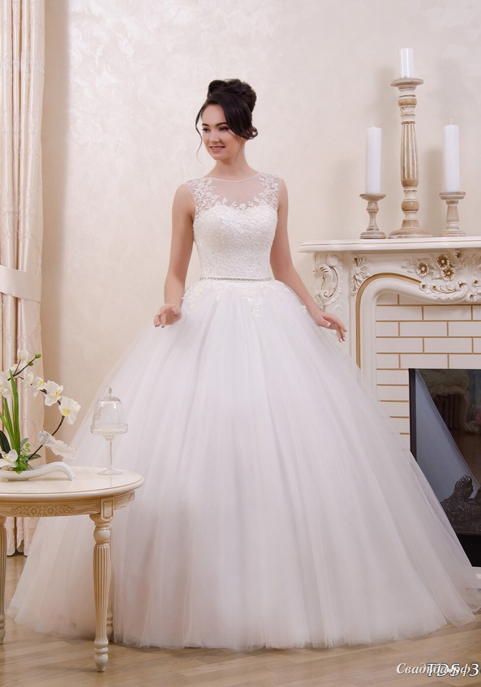 Свадебное кружевное платье силуэта "с пышной юбкой"
