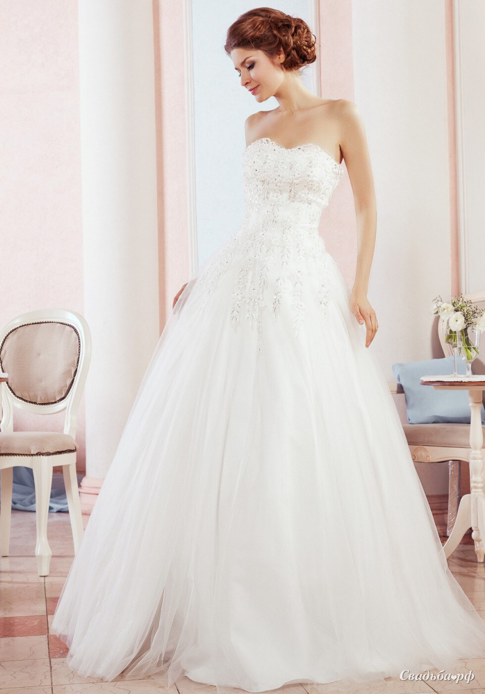 Расшитый корсет, фатиновая юбка, декор ручной работы и заниженная талия - выбор невест в тренде! Очень нежное и необычное платье.