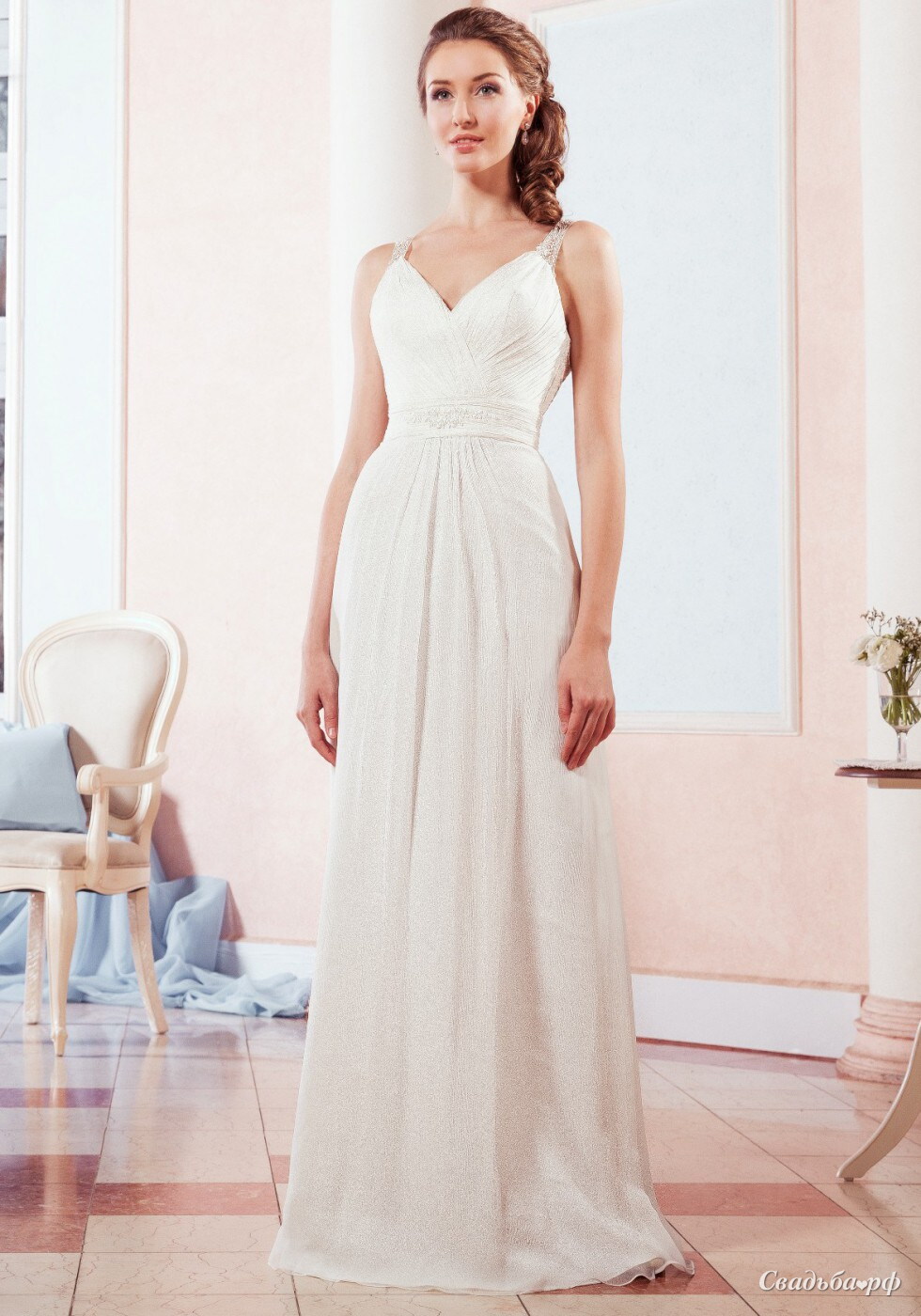 Легкое платье из шелка, с глубоким вырезом, хрустальной вышивкой и с бретельками - идеальный выбор для летней свадьбы!