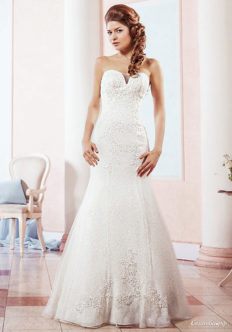 Идеальное свадебное платье для стройных невест! Полупрозрачная спина, изящные пуговки и облегающий силуэт.