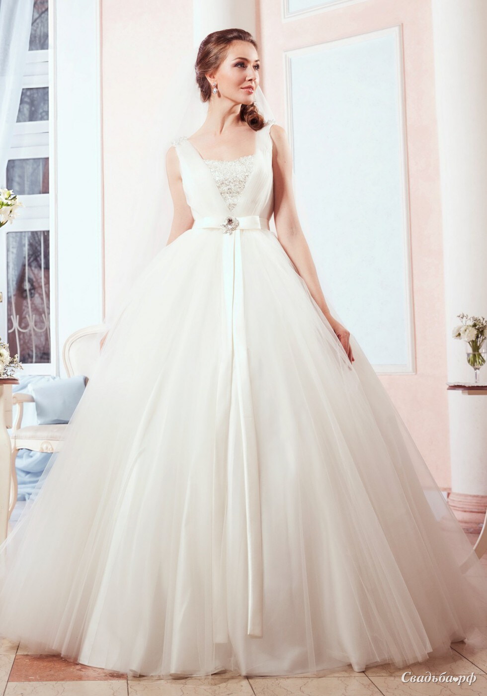 Идеальное платье для невест, которые всю жизнь мечтали стать принцессами! Многослойная юбка, корсет с вышивкой и расшитые лямки, поясок с брошью.