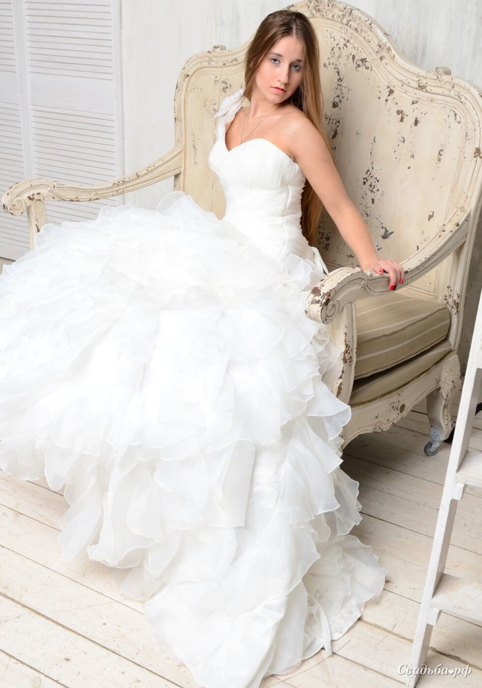 Свадебное платье фасона Русалка (Рыбка) из атласа и щифона, с небольшим шлейфом, корсет позволяет подогнать платье максимально точно по фигуре на размер 42-44-46!