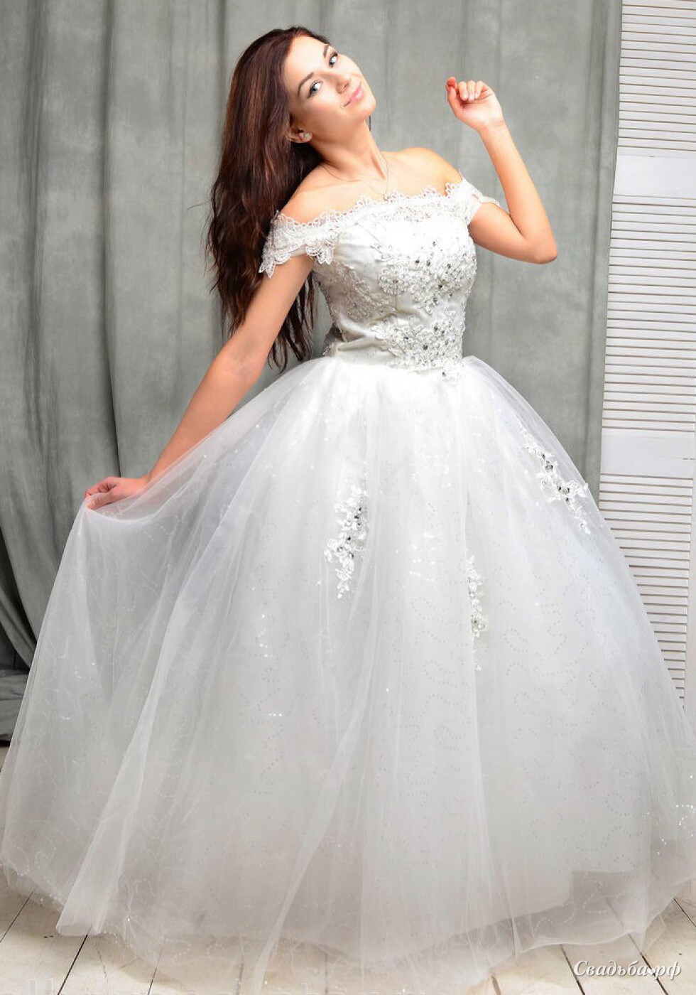 Пышное свадебное платье принцессы из органзы и кружева, наличие корсета позволит точно подогнать платье по фигуре, размер от 42 до 46!