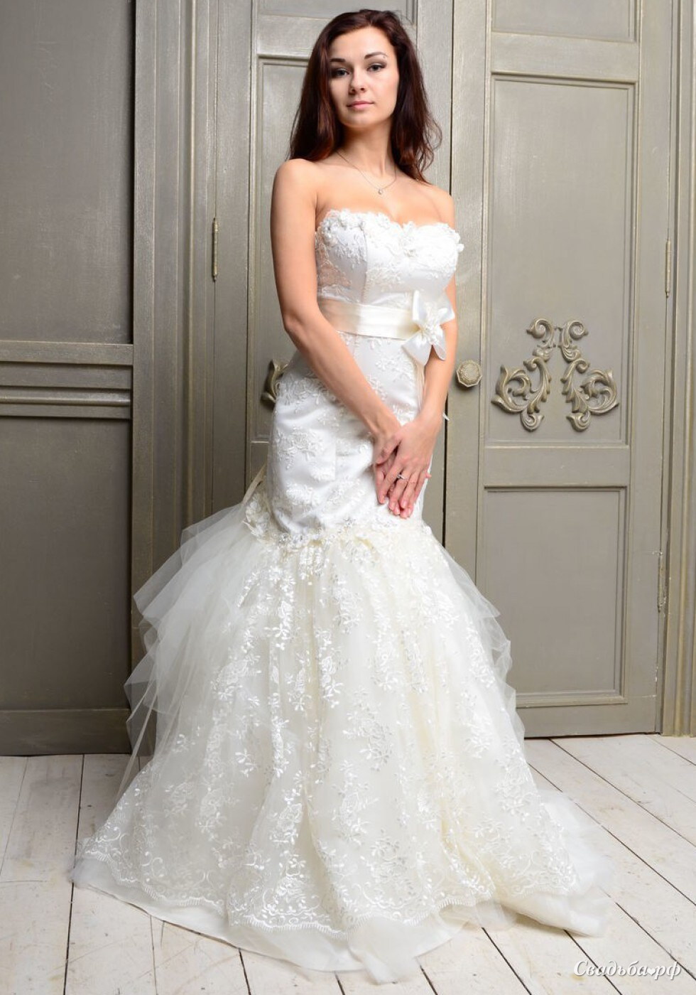 Замечательное платье из органзы и кружева, дополнительный элемент - пояс с бантом. Наличие корсета позволяет точно подогнать платье по фигуре: размер от 42 до 46!