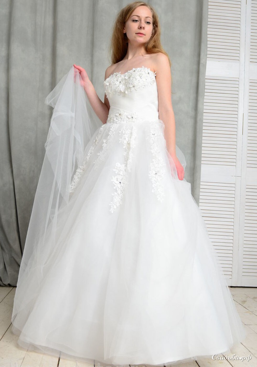 Нежное пышное платье украшенное цветками, сшито из воздушного шифона, наличие корсета помогает точно посадить платье по фигуре, возможный размер от 42 до 46!