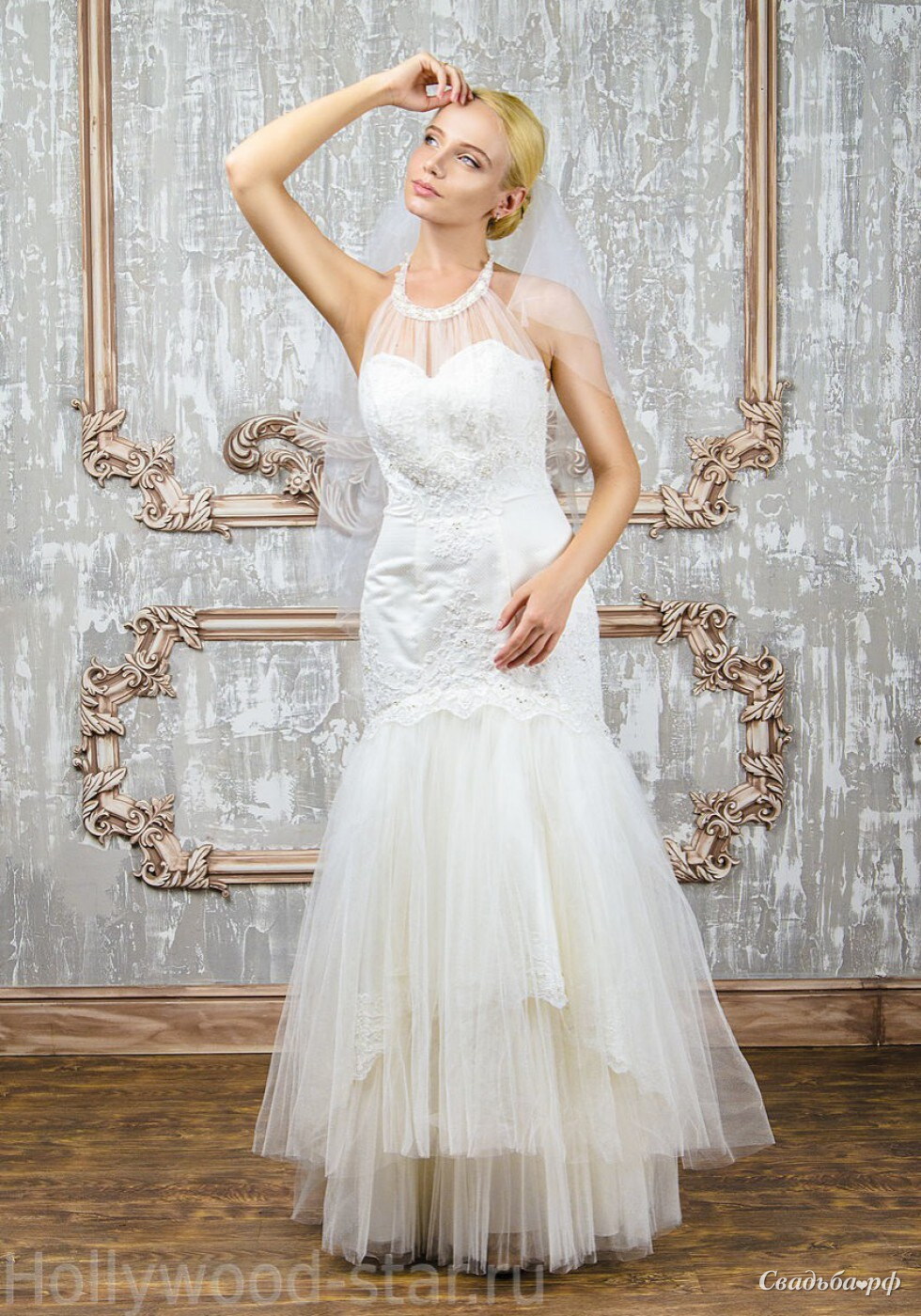 Свадебное платье фасона "Русалка": двухярусная юбка из шифона красиво сочетается с верхом из атласа. Замечательная отделка кружевом хорошо дополняет внешний вид!
