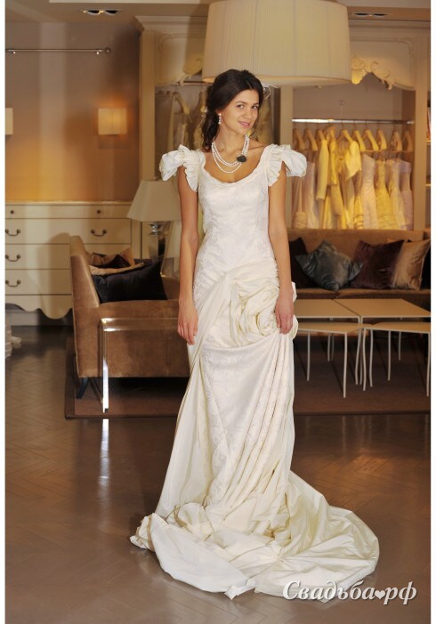 Если вы мечтаете о нежном и изысканном образе в ваш самый торжественный день в жизни, то представленное свадебное платье создано специально для вас. Открытая зона декольте, объёмные плечики, длинная юбка с эффектным шлейфом - вот далеко не весь перечень достоинств этой модели. Платье зрительно вытягивает силуэт. Выбор Wedding!