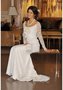 Элегантное платье с округлым вырезом и длинными рукавами из нежного кружева. Крупный цветок ручной работы привлекает внимание к зоне декольте. Облегающая юбка слегка расширяется к полу и переходит в красивый длинный шлейф. Этот свадебный туалет - лучший выбор для девушки высокой и стройной, с хорошей фигурой.