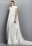 Оригинальное свадебное платье свободного кроя. Короткие рукава-фонарики, объёмная стоечка под горло и тонкие складки от зоны декольте придают модели элегантный вид. Платье по всей длине расшито пайетками. Длинный шлейф дополняет образ. Подойдет такой наряд как строгим девушкам, не желающим демонстрировать свою фигуру, так и особам в пикантном положении. Также идеально подходит для венчания.