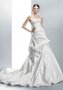 Белоснежное платье с открытыми плечами и заниженным корсетом. Модель изящно подчёркивает соблазнительные формы. Ровный лиф и корсет украшены легкой драпировкой. Длинная юбка украшена объёмными сборками и складками. Эффектный шлейф дополняет оригинальный образ. В этом платье вы будете сногсшибательны.