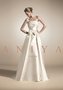 Романтическое классическое платье для истинной мечтательницы. Изящный корсет плавно переходит в юбку колокол с небольшим шлейфом. Романтический образ тонко дополняет очаровательный бант из атласа на талии. Открытые руки и плечи, скромное декольте. Хороший вариант свадебного наряда для девушки небольшого роста.