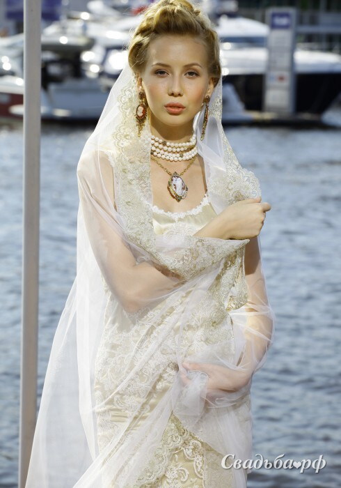 Это платье в стиле винтаж. Для тех, кто предпочитает играть образ барышни из прошлого столетия. Винтажное кружево, прямой силуэт и длинная фата, развевающаяся на ветру. Оно прекрасно, в нем столько изящества, столько нежности. А грамотно подобранные украшения в этом же стиле только подчеркнут образ девушки из прошлого века. Это платье прекрасно подойдет как для торжественной церемонии, так и для венчания в церкви.