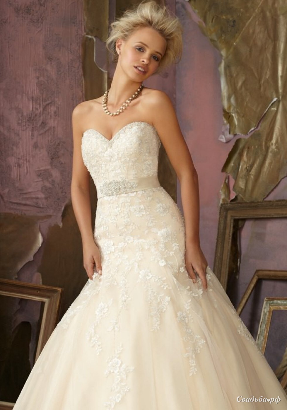 Свадебное платье расшито кружевом и бисером. Корсет выполнен c вырезом "сердечко". Нежный пояс с кристаллами и бисером придает элегантность модели. Пышная юбка из фатина. Подкладка - сатин. Спина платья на скрытой молнии с декоративными маленькими пуговичками. Сзади длинный шлейф. Индивидуальный пошив по вашим меркам 20 дней с любыми дополнениями или изменениями.