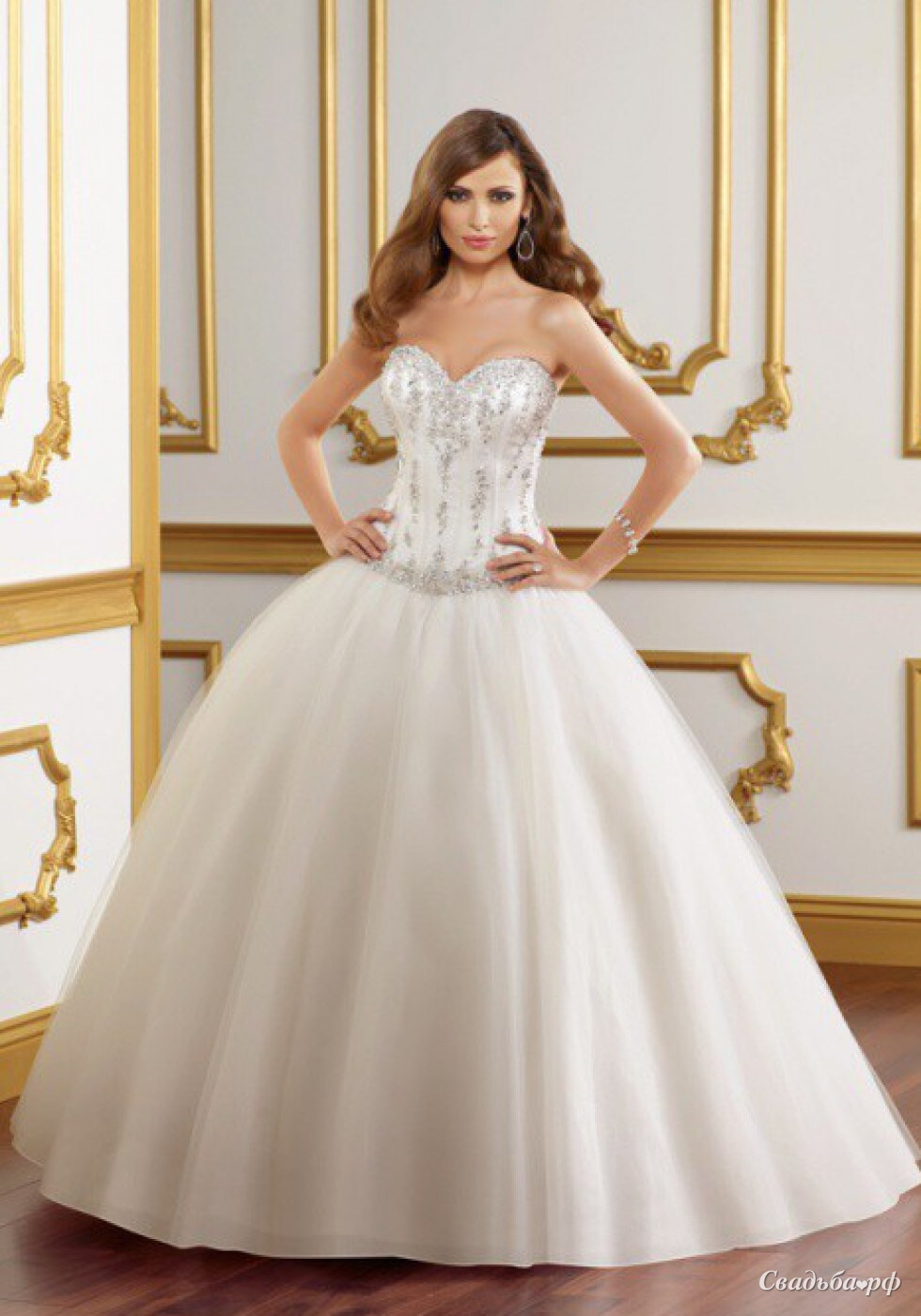 Пышное свадебное платье из фатина. Корсет платья с заниженной талией, расшит бисером и кристаллами, вырез в виде "сердечка". Подкладка - сатин. Спина платья на шнуровке. Сзади шлейф. Индивидуальный пошив по вашим меркам 20 дней с любыми дополнениями или изменениями.