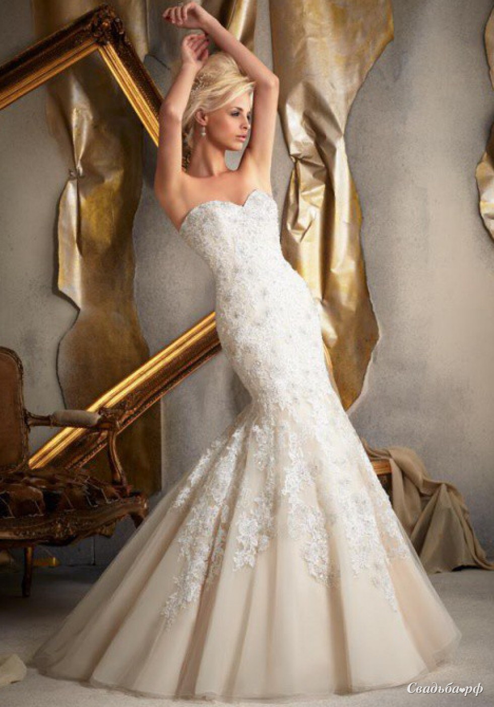 Свадебное платье русалка с вырезом сердечко с пышной юбкой. Свадебное платье расшито кружевом, стеклярусом и бисером. Нежный пояс придает элегантность модели. Пышная юбка из фатина. Подкладка сатин. Спина платья на скрытой молнии с декоративными маленькими пуговичками. Сзади шлейф. Индивидуальный пошив по вашим меркам 20 дней с любыми дополнениями или изменениями.