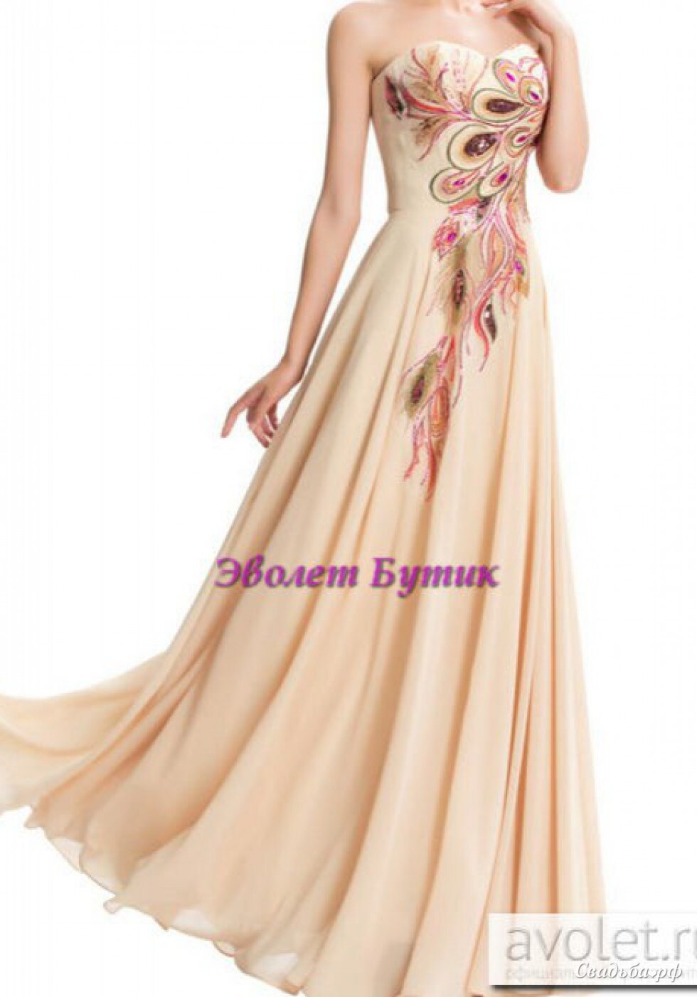 Вечернее платье, материал шифон. Верх платья в виде корсета расшит аппликациями, вышивкой и кристаллами. Лиф с чашечками. Подкладка сатин. Шнуровка. 100% полиэстер. Эволет Бутик, www.avolet.ru, тел.: 8(915)-101-21-51