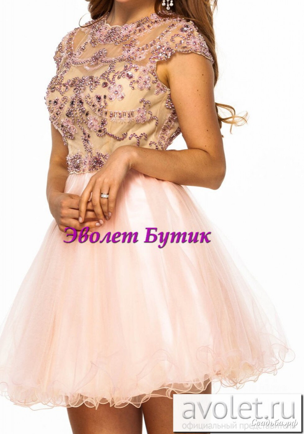 Короткое вечернее платье с юбкой-пачкой. Верх платья полностью расшит узором из страз, бисера и пайеток, с внутренней стороны подкладка. Лиф с чашечками, сзади спина открытая, вырез в форме «лодочка». Юбка многослойная выполнена из фатина. Состав: 100% полиэстер. Индивидуальный пошив в любом цвете 20 дней с любыми изменениями или дополнениями! Эволет Бутик, www.avolet.ru, тел.: 8(915)-101-21-51