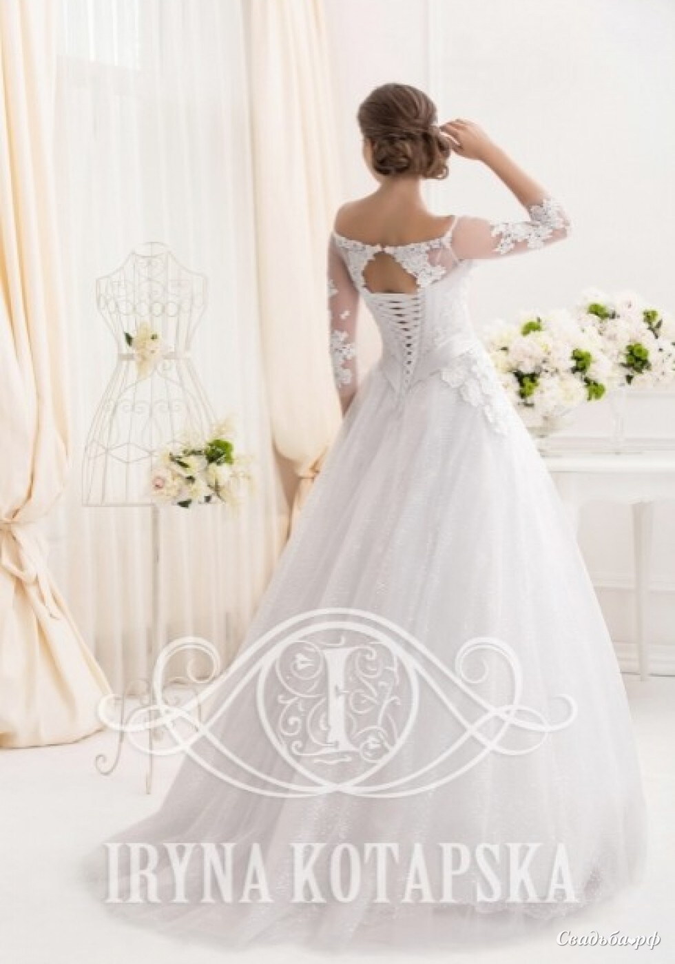 Выбор настоящих королев. Стильное платье со шлейфом очарует Вас своей уникальностью. Вырез "лодочка" подчеркивает хрупкие плечи невесты и длинную шею, нежнейший гипюр с аппликацией делают верхнюю кофточку платья образцом совершенства. Юбка из фатина блестит по всей длине, отражая солнечные лучи, и придает образу ангельской легкости. Поясок из атласа подчеркивает талию. Шлейф придает образу торжественности и королевской стати. Размер 44-46.
