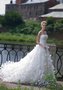 Нежное платье классической невесты с невероятным декором из цветов из материала. Серединка каждого цветка выполнена из небольшого кристалла. Размер регулируется за счет шнуровки. Чашечки вшиты. Платье очень пышное и роскошное. Прекрасно подойдет для пышной церемонии. Размер 40-44.